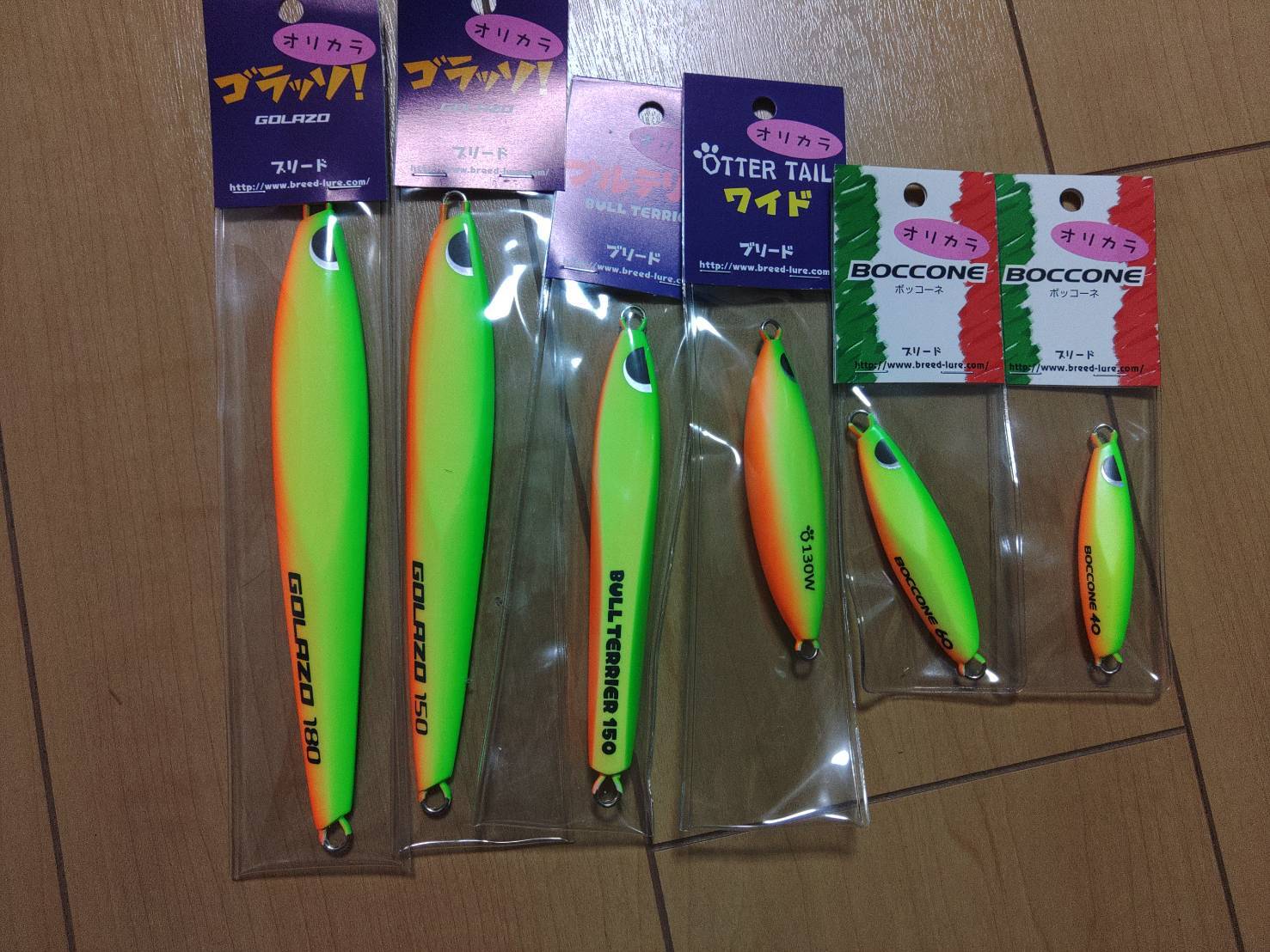 BREED ブルテリア175g、WR.KAYAKSオリカラのライムチャートオレンジUVです。